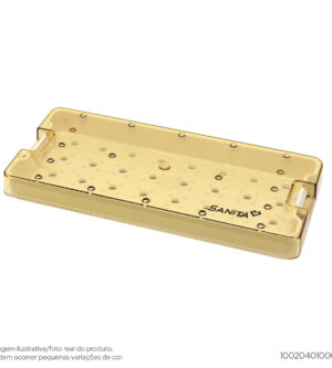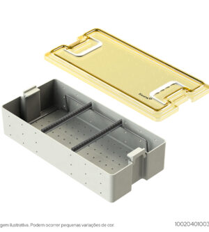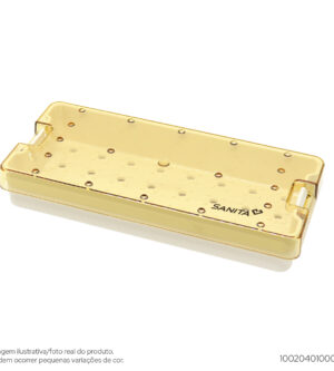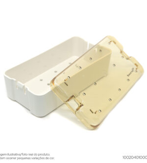 Produzido em Resina TermoplásticaEste modelo, quando utilizado com manta é ideal para acomodar, transportar e esterilizar na autoclave instrumentos pequenos e delicados que são comuns nas áreas de oftalmologia e cirurgia plástica; quando utilizado com perfil é ideal para instrumentos odontológicos para implantodontia. Produzido em resina termoplásticaDimensões internas: 174mm x 79mm x 18mmDimensões externas: 195mm x 91mm x 24mm