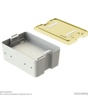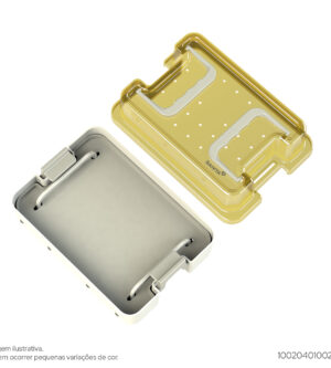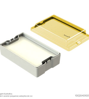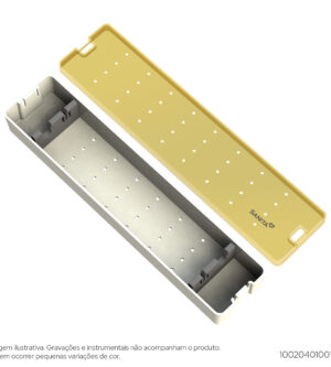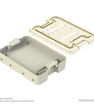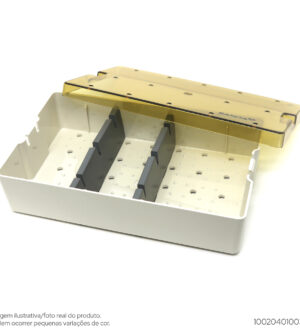 Produzido em Resina TermoplásticaUtilizado para armazenar instrumentos de Ortopedia, Neurologia e Oftalmologia.Dimensões internas: 237mm x 145mm x 54mmDimensões externas: 262mm x 161mm x 60mm