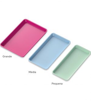 Bandejas Utilizadas como material de apoio no dia a dia dos profissionais, pois permite a acomodação e a organização de instrumentos durante a realização de procedimentos. Fabricada em resina, que permite a esterilização em autoclave, seu formato facilita a limpeza e higienização. Dimensões: 227mm x 131mm x 17mm Cores: Amarelo 100204020008 Azul 100204020007 Branco 100204020005 [...]