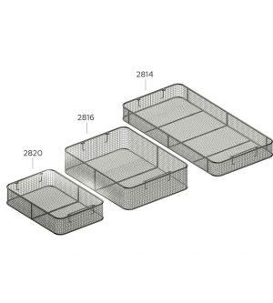 Os cestos Sanitá possuem alças fixas, solda resistente, base em inox reforçada e tela artística ondulada. Produto autoclavável. Dimensões: 495mm x 245mm x 55mm Cód.: 100204000001