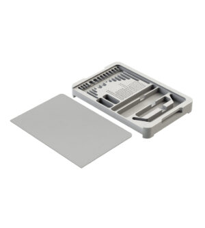 Produzido em Resina TermoplásticaUsado para acomodação de instrumentos de laparoscopia, ortopedia, neurologia, artroscopia e otorrinolaringologia.Dimensões internas: 498mm x 249mm x 116mmDimensões externas: 563mm x 272mm x 145mm
